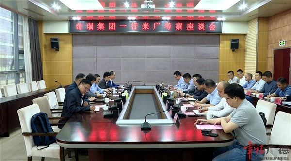 座谈会上,胡启望对考察团的到来表示热烈欢迎。他表示,宣城市委、市政府高度重视与集团合作,希望通过此次交流,加强合作,做好规划,紧锣密鼓推动合作项目尽快达成,推动双方共赢发展。广德市委副书记、市长周其红代表广德市委、市政府欢迎奇瑞集团来广投资,简要介绍了双方前期合作事项推进情况,并承诺广德市将全力做好服务保障工作,确保项目早日落地。