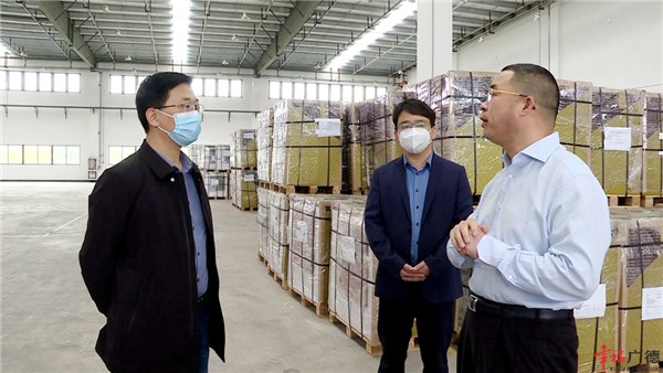 钱会一行实地考察了皖东南保税物流中心保税仓库,细致地查看了存放于仓库的进出口货物,详细了解货品种类、用途、销售以及运输费用等,并就保税物流中心功能定位、建设运营和发展规划与负责人进行深入交流。