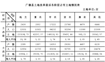 广德县土地改革前后各阶层占有土地情况表