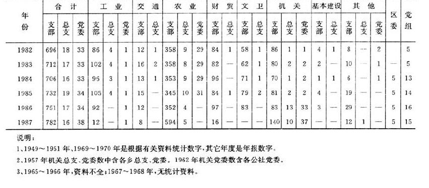 1949年至1964年,全县党员和党组织有很大发展,党员由358名增至4898名,党支部由22个发展到394个,建立4个党组、5个区委、30个基层党委。