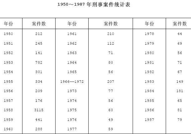 50年代至70年代,本县其它刑事案件以强奸、盗窃、杀人、抢劫、流氓等较突出。1950~1979年,全县共审结除反革命案件以外的其它刑事案件5641件。