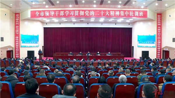 12月18日,全市领导干部学习贯彻党的二十大精神第一期集中轮训班结业式举行。市委副书记、市长钱会主持结业式并讲话。市领导储德清、张勇国、陈文杰、蒯浩宁出席。各乡镇、街道人大及市直单位主要负责人,乡镇、街道、市直单位部分领导班子成员,部分科级干部参加结业式。