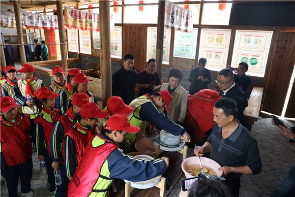 参与人员现场观摩邱村小学部分学生在基地开展的劳动实践教育活动。