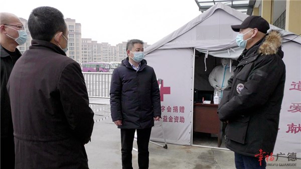 陈俊炎先后来到G50高速广德东出口和广德出口、火车站、长途客运中心、高铁广德南站,看望慰问疫情防控一线工作人员,为他们送去慰问物资和新春祝福。陈俊炎高度赞扬他们坚守岗位、尽职尽责的奉献精神,对他们长期以来的辛苦付出表示感谢,并叮嘱大家在雨雪天气里做好防寒保暖工作,在日常工作中注意做好自身防护。 走访中,陈俊炎详细询问了解各处人员值班值守、核酸检测采样等工作开展情况。他指出,春节将至,人员流动大幅增加,疫情防控形势更加严峻复杂,各地要从严从细落实疫情防控各项举措,做好来(返)广人员和车辆的排查、引导工作,织牢织密疫情防控安全防线,确保全市人民群众生命安全和身体健康。