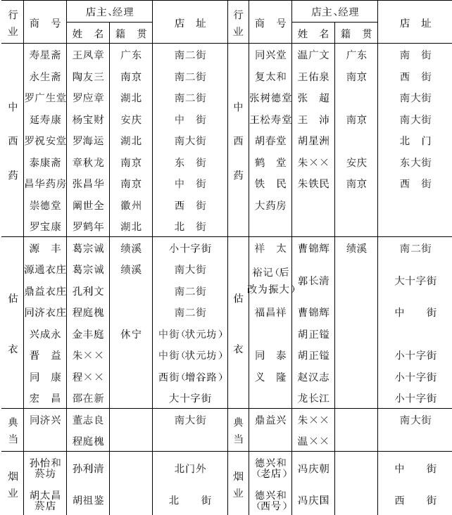 本县商号总的特点是:行业较多,规模较小;开在县城的多,设在乡镇的少;独资开店的多,合资经营的少;零售商多,批发商少;店主外籍人多,本籍人少;店史较短,无百年老店。