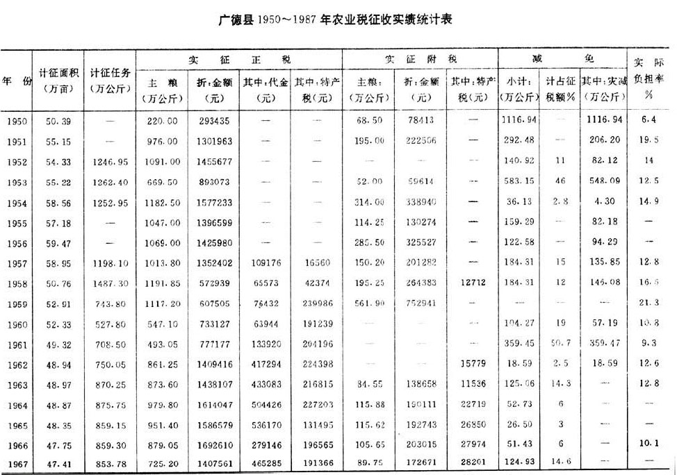 农业税减免清代,文职吏员、乡绅和贡举生员优免赋役,如遇荒歉,田赋也有减免。民国时期,县内凡遭较大自然灾害,田赋均有减免。