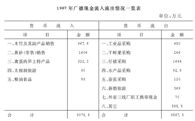 1987年广德现金流入流出情况一览表