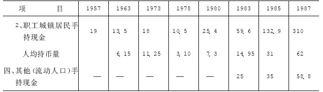 广德地属山区,历来以农业为主,农村人口占全县总人口的90%以上。故市场货币流通量主要分布在农村。1957年,农民和城镇职工居民手持现金分别占全县个人手持现金总量的56.7%和21.1%。中共十一届三中全会后,随着联产承包责任制的实施,各类专业户大量涌现,增大了市场货币容量。1987年末,农民手持现金占全县个人手持现金总量的比例上升到70.9%,人均持币51.6元;城镇居民手持现金所占比例下降为10.1%,人均持币62元。货币存量分布反映了农村经济体制实行变革后的良好效益。
