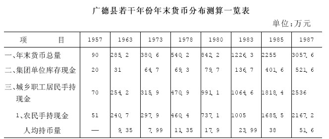 广德县若干年份年末货币分布测算一览表