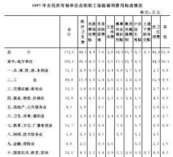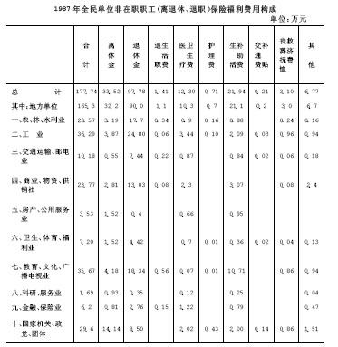 1987年全民所有制单位在职职工保险福利费用构成情况