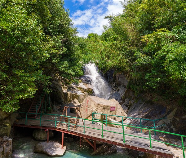 灵山大峡谷位于广德市四合乡红霞村,地处黄山和天目山余脉汇合处,景区目前已开通自然山水观光区、峡谷漂流亲水区等。拥有竹海大瀑布、彩云瀑、三连瀑、响水潭、神龟驮经、棋盘石等72处景点。峡谷内涧水悠长,险峰竞秀,瀑群高悬,各种奇石星罗棋布。融山、水、石、瀑、寺、林、洞于一体,实属一座天然氧吧。